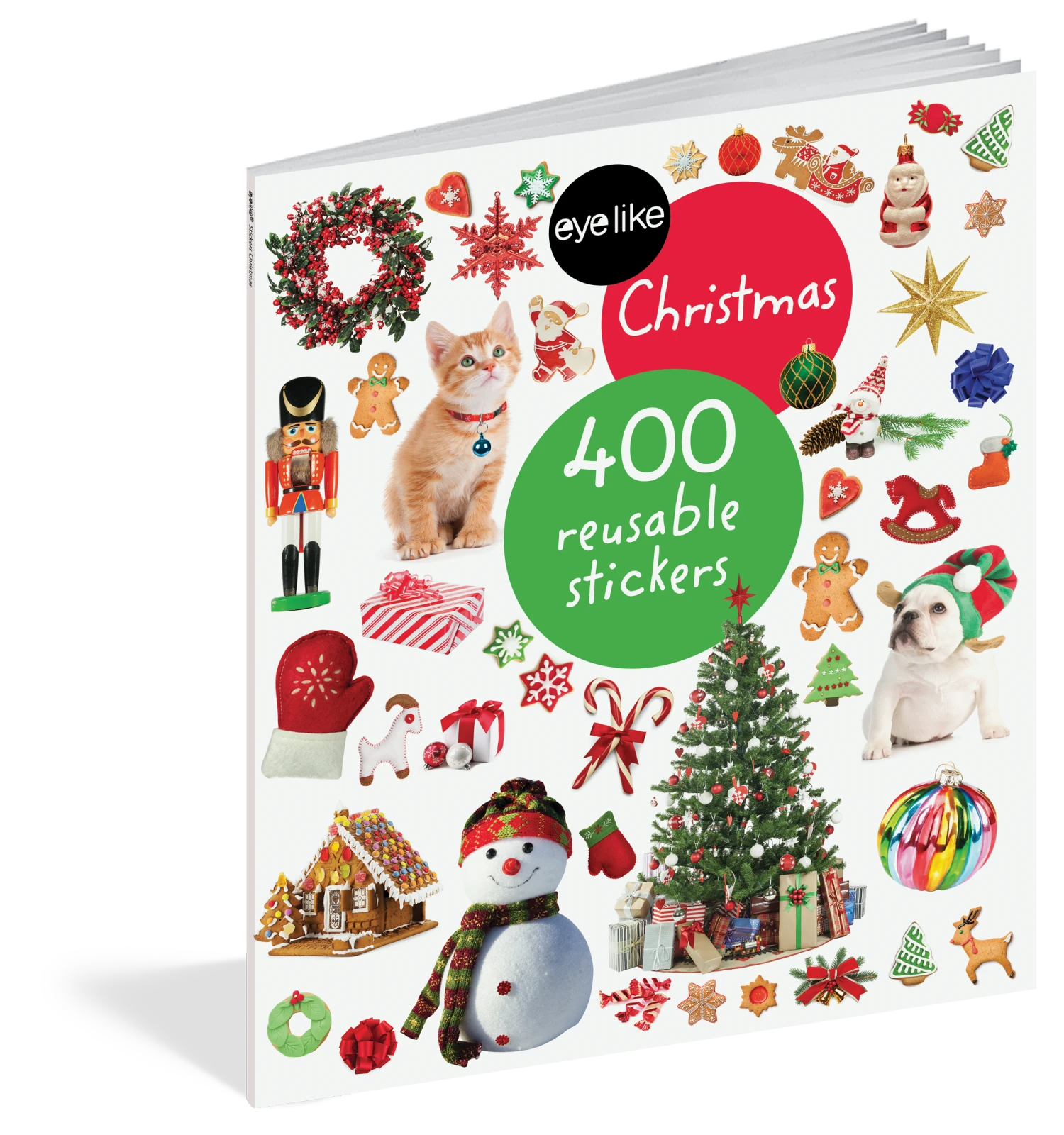 EyeLike Stickers: Christmas celebrates the biggest holiday of the year with 400 high-quality, photographic images that are amazingly lifelike in color and detail. The durable, reusable stickers are designed to be stuck on and peeled off over and over again without losing adhesive. Ornaments and Santa hats, reindeer and an old-fashioned sleigh, trees to decorate, stockings to hang, presents to unwrap—every page of stickers captures the feeling of Christmas. Use them to decorate notebooks, cards, scrapbooks, crafts, party invitations, lunchboxes, even windows; create a lively scene on the book’s inside front and back covers—which double as glossy illustrated backgrounds—and change them up when the mood strikes.