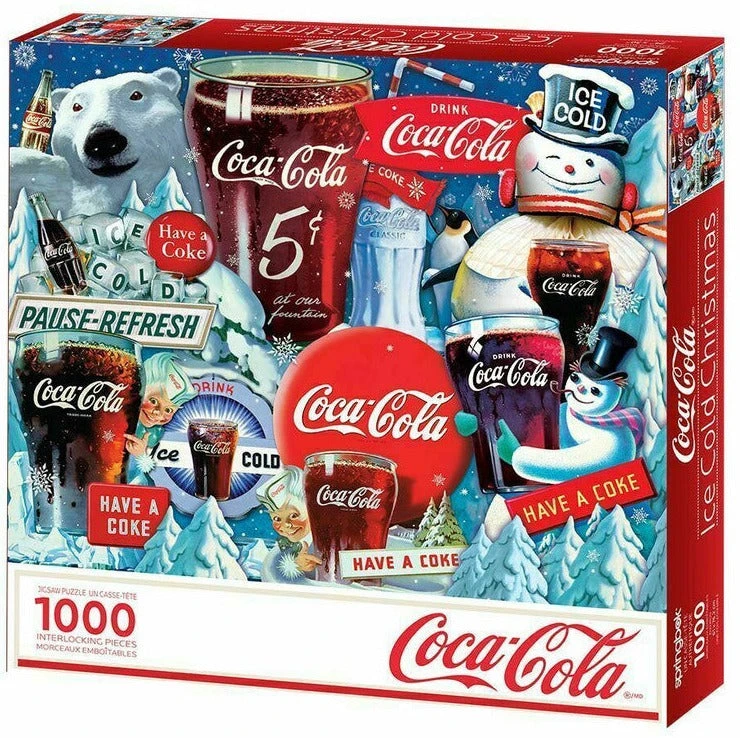 Brr!-ing on the challenge of our new 1000 piece Coca-Cola puzzle. An assortment of iconic characters from the North Pole recommends their choice of refreshment in this collage. Have a coke!