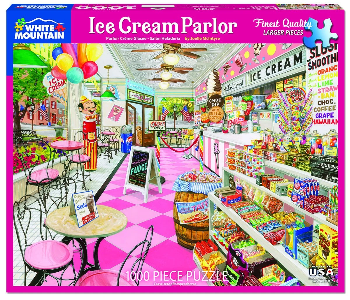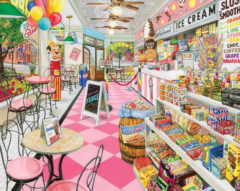 Pink and perfect, this old fashioned emporium invites us to enter and partake of something sweet and heavenly. Pull up a wrought iron chair with a classic heart pattern twisted into its shape and enjoy a variety of ice cream and frozen yogurt, or fudge, or candy, or slush, or even Maine taffy if that’s your preference