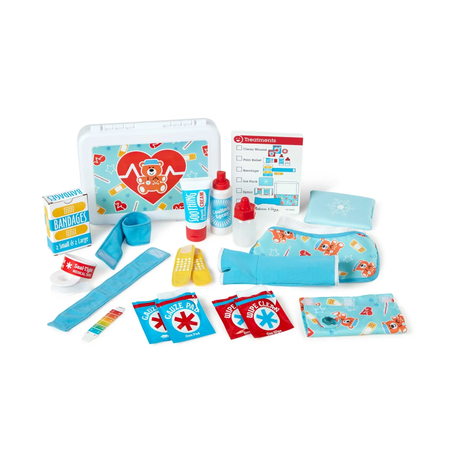 - 25-piece first aid kit play set with realistic pretend first aid essentials to examine and treat injuries