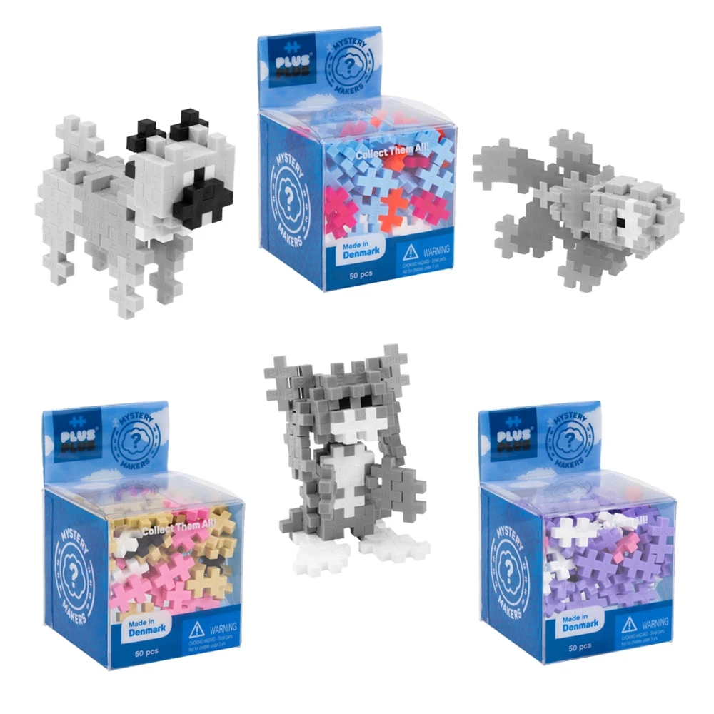 Mystery Makers include 50 Plus Plus pieces to make 1 of 6 different pets.