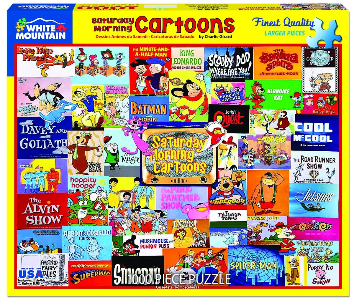 Put on your favorite pair of jammies with the feet and sit down on the floor with a bowl of snap, crackle & popping cereal to enjoy the Saturday Morning Cartoons you used to watch on The Tube. Popeye, Abbott & Costello, Scooby Doo, Mighty Mouse, The Jetsons, Underdog, Pink Panther, Yogi Bear, Road Runner – all these and more can be found on this 1,000 piece puzzle.